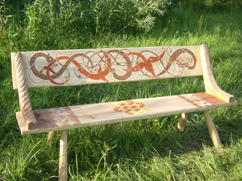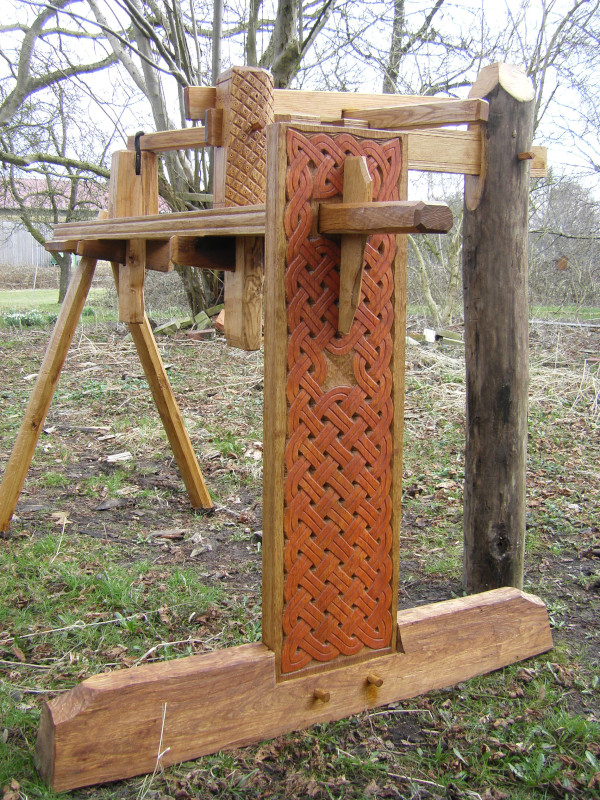 Rekonstruktionen historischer MöbelDiese Möbel entstehen nach Vorlagen und in Handarbeit. Romanisches PfostenbettRekonstruktion eines spätmittelalterlichen, romanischen Pfostenbetts aus Esche, Eiche, Schwarzkiefer, Ulme und Obsthölzern mit genuteten Bohlen.SitzbankFrühmittelalterliche Bank mit beschnitzten Krummhölzern und Schnitzereien nach eigenen Entwürfen.Stuhl und HockerMittelalterliche Stühle und Bänke.WindsorstuhlWikingertruheMittelalterliche Truhen mit handgeschmiedeten Beschlägen.Niederdeutsche StollentruheSpätmittelalterliche Truhe.WippdrechselbankEigener Entwurf einer Wippdrechselbank aus meiner Kurswerkstatt.Dies sind nur ein paar Beispiele, von Dingen, die ich herstelle. Ihre Wünsche nehme ich gerne entgegen. |